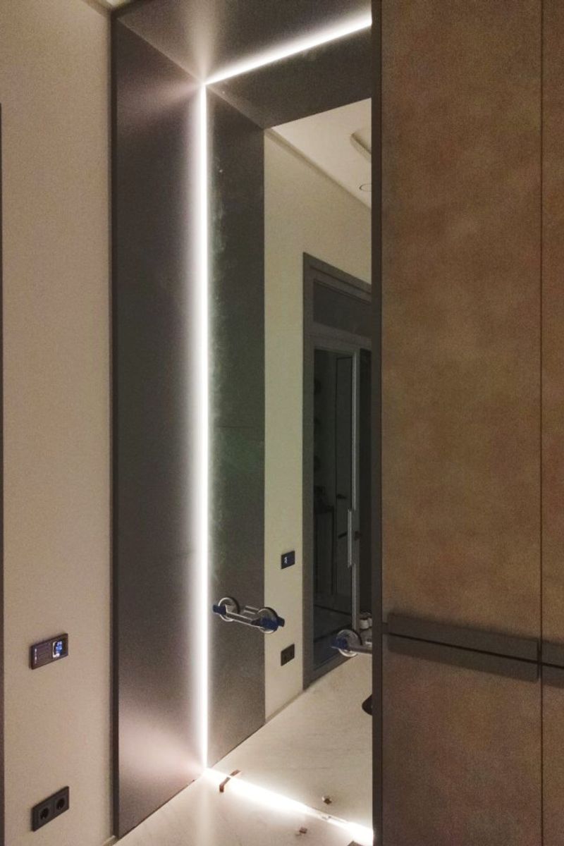 Создали масштабное и элегантное зеркало с подсветкой! Это впечатляющее изделие размером более 3405 ×1115 мм стало акцентом интерьера нашего заказчика. Подсветка, аккуратно установленная по периметру, создаёт мягкое и равномерное освещение, подчёркивая стиль и функциональность. Мы тщательно продумали каждый этап монтажа: сначала установили подсветку на стену, а затем закрепили зеркало.
